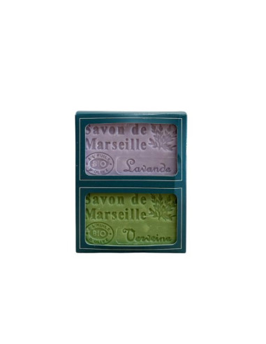Coffret de 2 savons de Marseille 125 gr. aux huiles végétales et huile d 'olive bio :