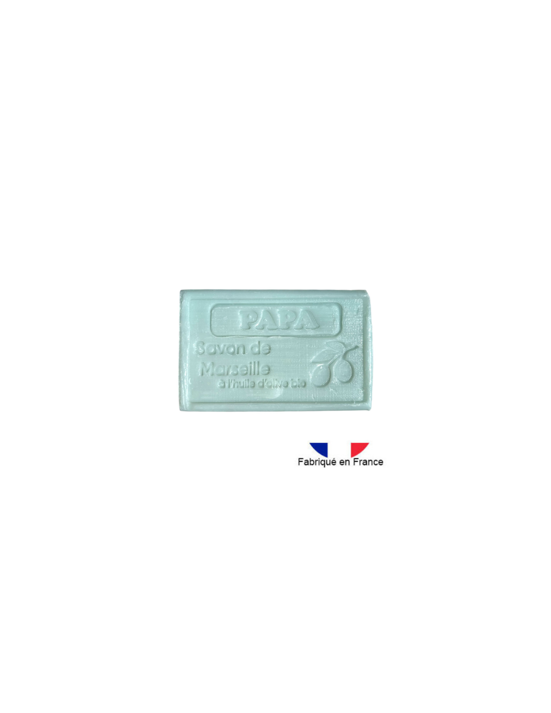 Sapone di Marsiglia "Papa", 125g con la sua scatola in metallo "Super Papa".