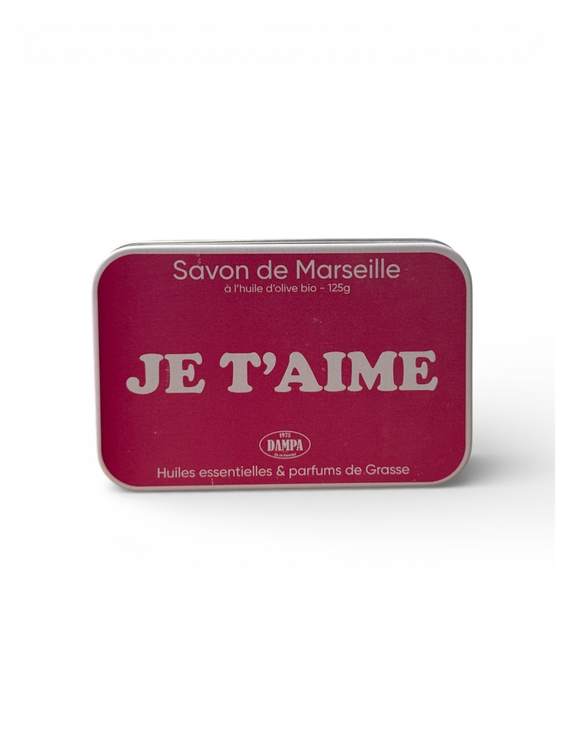 Custodia in metallo "Je t'aime" con il suo sapone di Marsiglia "Je t'aime", 125g, fatto con oli vegetali e olio d'oliva biologico, fatto a mano in Francia (13).